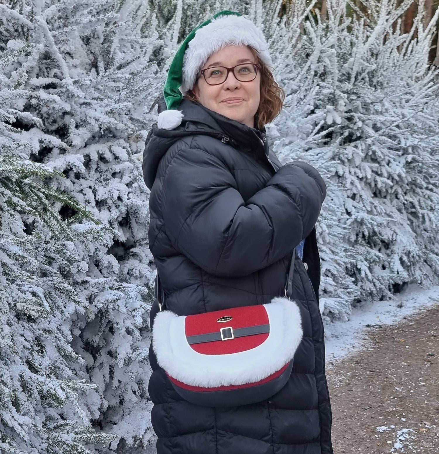 I've used the Sassy Saddlebag pattern in medium to create my favourite 'Santa' bag using Harris Tweed, charcoal Mora, a gold strap slider, white fleece and some fun white faux fur trim....such fun!