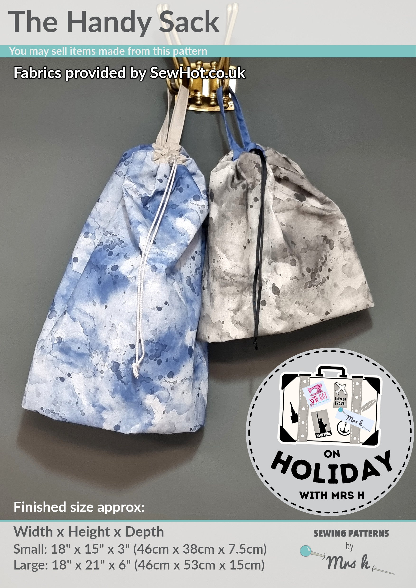 The Handy Sack is a quick, satisfying sew, and results in a versatile sack, for lots and lots of uses! Use it as a laundry bag on holiday (or at home), a swim bag, a gym bag, a toy container, a gift bag....the uses are endless!